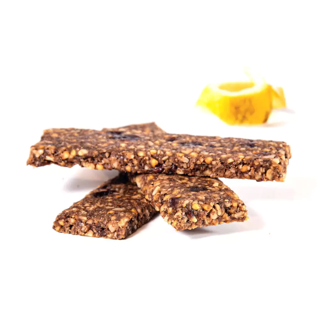 Barritas energéticas vivas, elaboradas sin utilizar glucosa, miel de abejas, margarina, cereales inflados, copos de cereales o aditivos químicos. Ideales para viajes o meriendas sustanciosas. Siendo un alimento de alta densidad, se recomienda buena masticación, adecuada insalivación y no exagerar en su consumo.