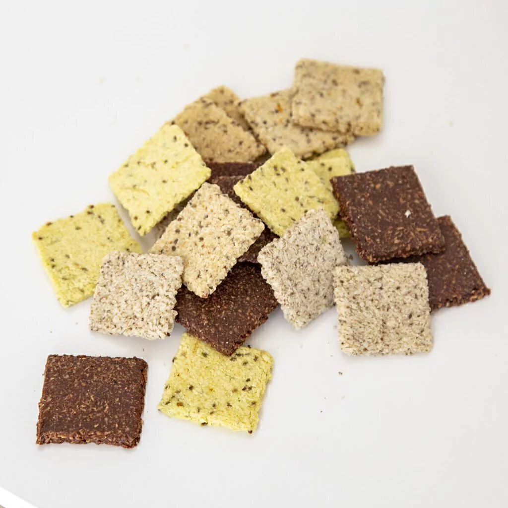 Elaboración que imita textura y forma de galletitas, en base al deshidratado de frutas y semillas procesadas, saborizadas y secadas en finas láminas. Ideal para consumir en todo momento, en viajes o entre horas.
